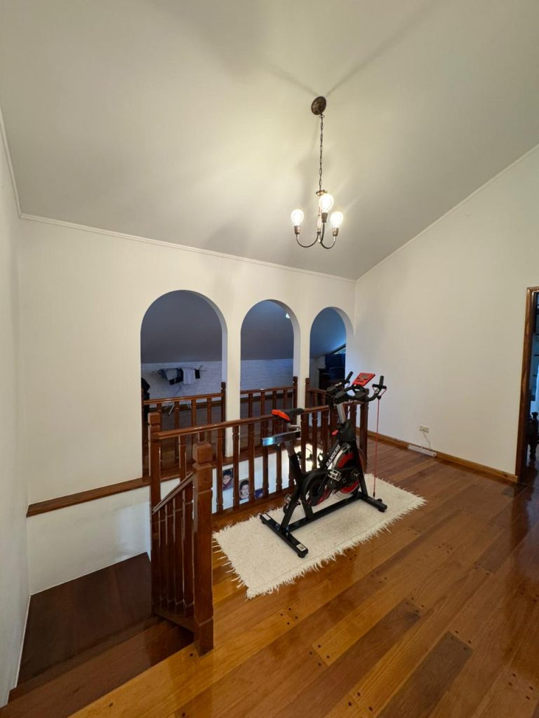 Escalera y planta alta con pisos de madera plastificados