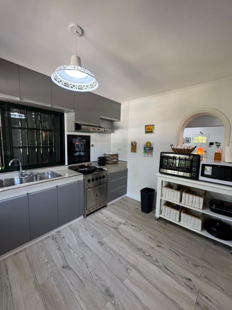 Cocina amplia con muebles sobre y bajo mesada