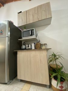 COCINA TOTALMENTE EQUIPADA CON COCINA ELÉCTRICA DE CUATRO HORNALLAS Y MUEBLE BAJOMESADA Y ALACENA