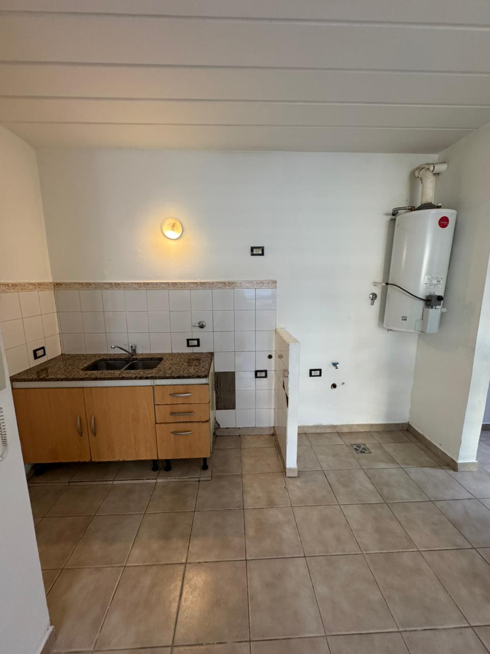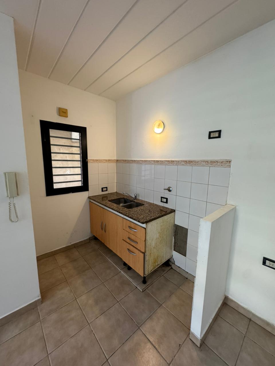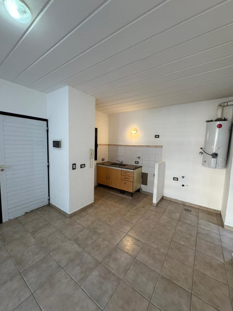 Cuenta con: Un living comedor de 4×7 con cocina incorporada, mueble bajo mesada y doble bacha.